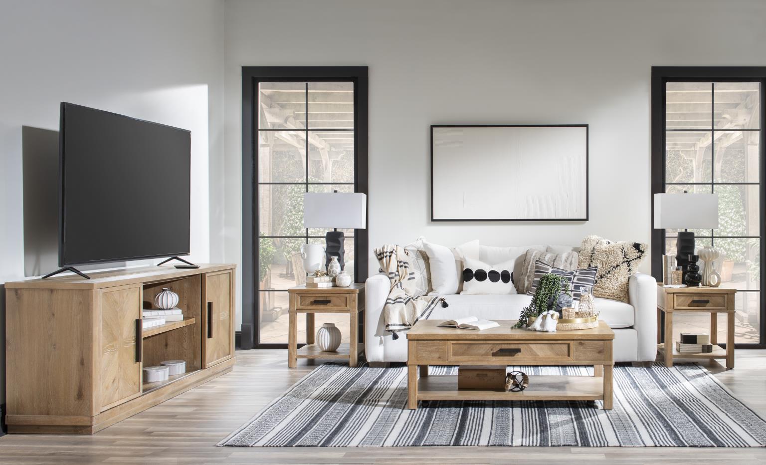 The Torrance whole home collection offers a warm and inviting contemporary casual design with an organic Aged Driftwood finish and a California coastal vibe. Crafted of random match White Oak with Split Heart Cathedral Veneers in a herringbone pattern on the drawer fronts and tabletops the bedroom dining and occasional pieces have clean lines plinth bases and a light and airy tone. Oxidized Bronze hardware adds a rustic elegant touch.