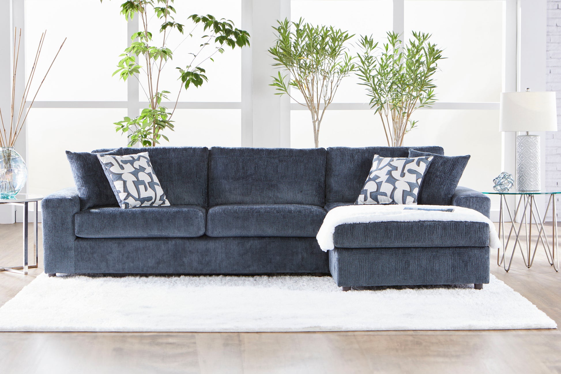 Introducing the Tristan Chaise Sectional, where comfort meets style in this meticulously crafted seating ensemble made in the USA. Versatile and spacious, this sectional combines a chaise lounge and matching loveseat, accommodating up to six guests effortlessly. Enjoy the plush comfort of attached pillow back cushions filled with foam, complemented by the sleek design of square arms for an added touch of elegance. Engineered for longevity, the sectional features solid and manufactured wood frames fortified with reinforcing corner blocks and sinuous springs, promising enduring durability and support. Adorned in 100% polyester fabric, with four coordinating accent pillows, the Tristan Sectional effortlessly infuses any space with a sense of understated sophistication.