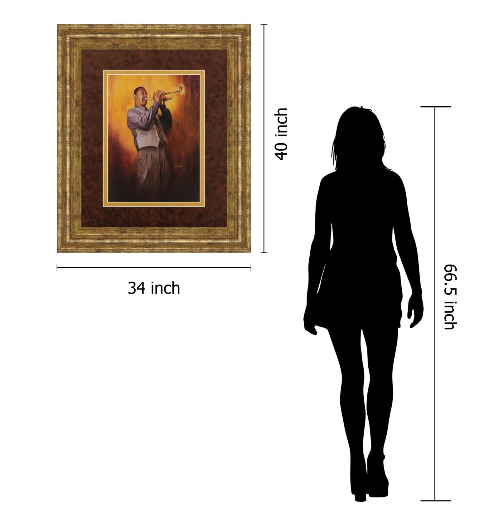 Trumpet Man By Delancy - Framed Print Wall Art - Yellow