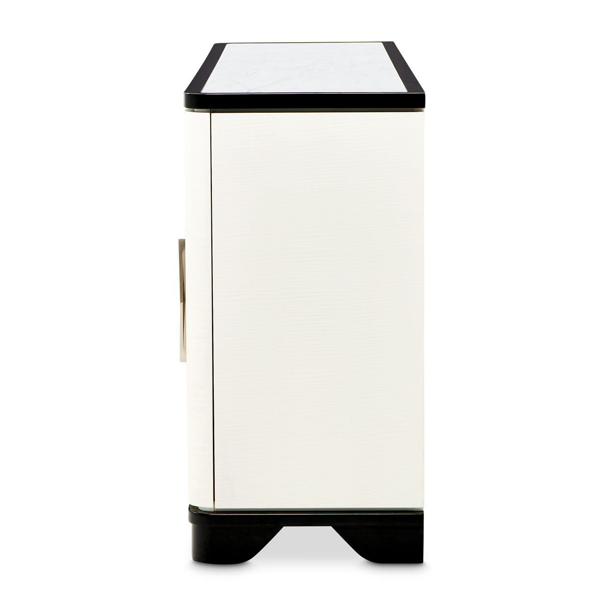 Crowned with a sleek marble inlay, the Tuxedo sideboard combines exquisite aesthetics with practical design. The elegant white surface is complemented by spacious cabinets and drawers, including discreet side storage that seamlessly blends with the unit’s sophisticated silhouette. Inside, a silverware tray adds a thoughtful touch, ensuring your finest pieces are stored with the care they deserve. Whether hosting a gala or a quiet family dinner, the Tuxedo Sideboard stands as a symbol of gracious living.