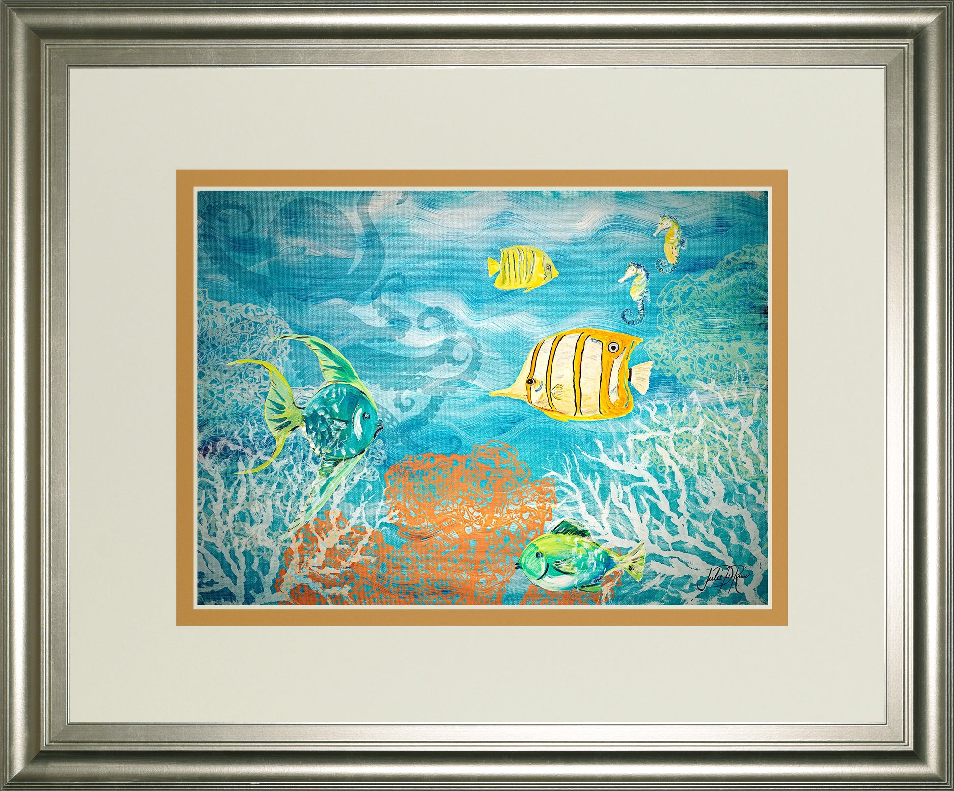 Under The Sea By Julie Derice - Framed Print Wall Art - Blue