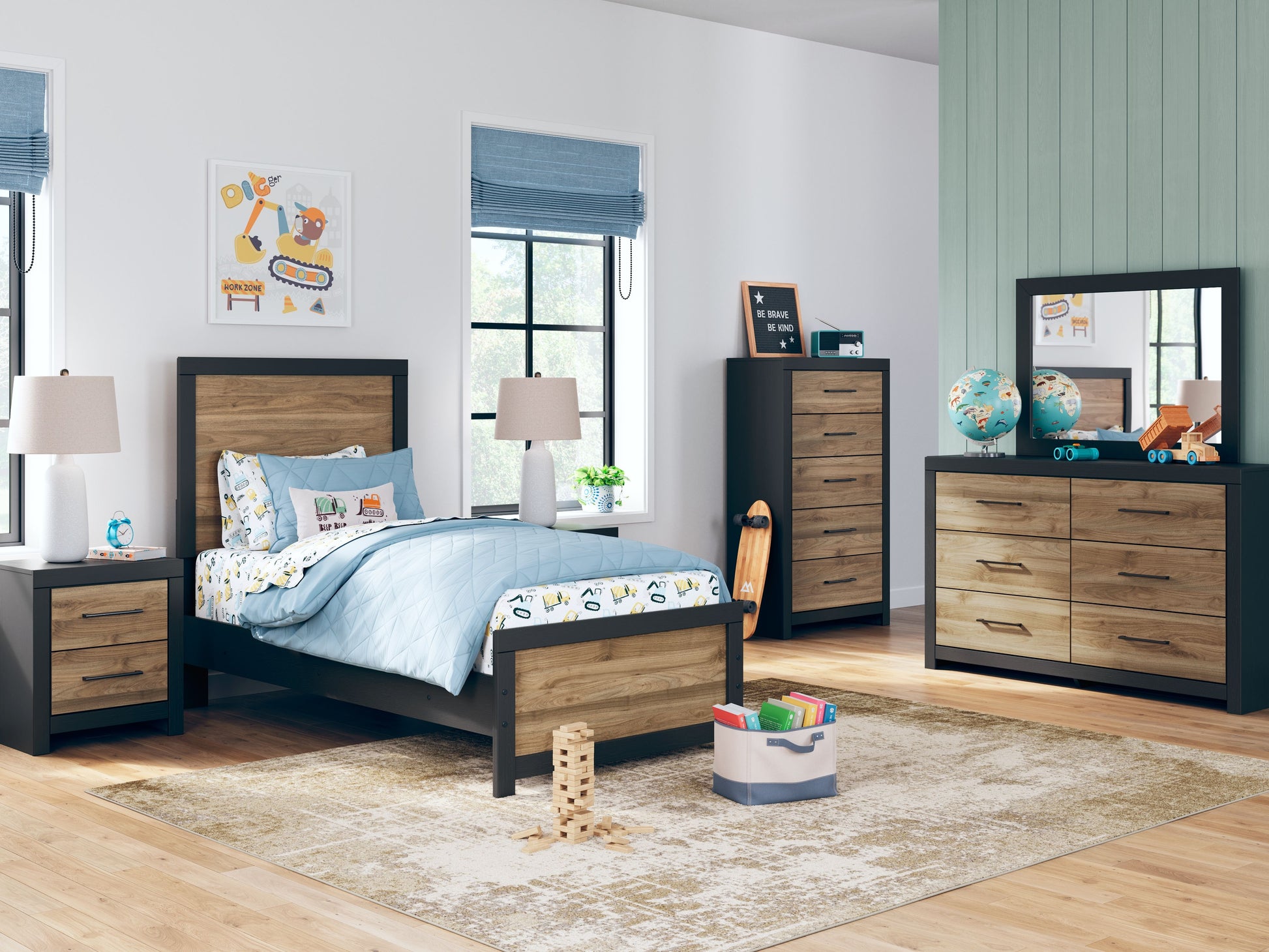 Vertani - Black - 7 Pc. - Dresser, Mirror, Chest, Twin Panel Bed, 2 Nightstands