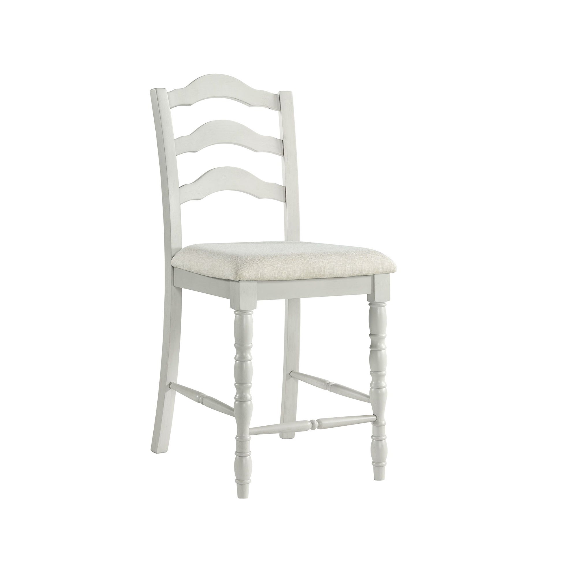 The Vesta 5PC Counter Dining Set combines farmhouse style with a two-toned finish to create a stunning addition to your dining space. The white upholstered seats add comfort and charm, while the espresso table top provides a striking contrast. The classic arched ladder-back chairs and country turned legs add a touch of rustic flare to the set. Whether you're hosting a dinner party or enjoying a family meal, this counter dining set will create a cozy and inviting atmosphere in your home.