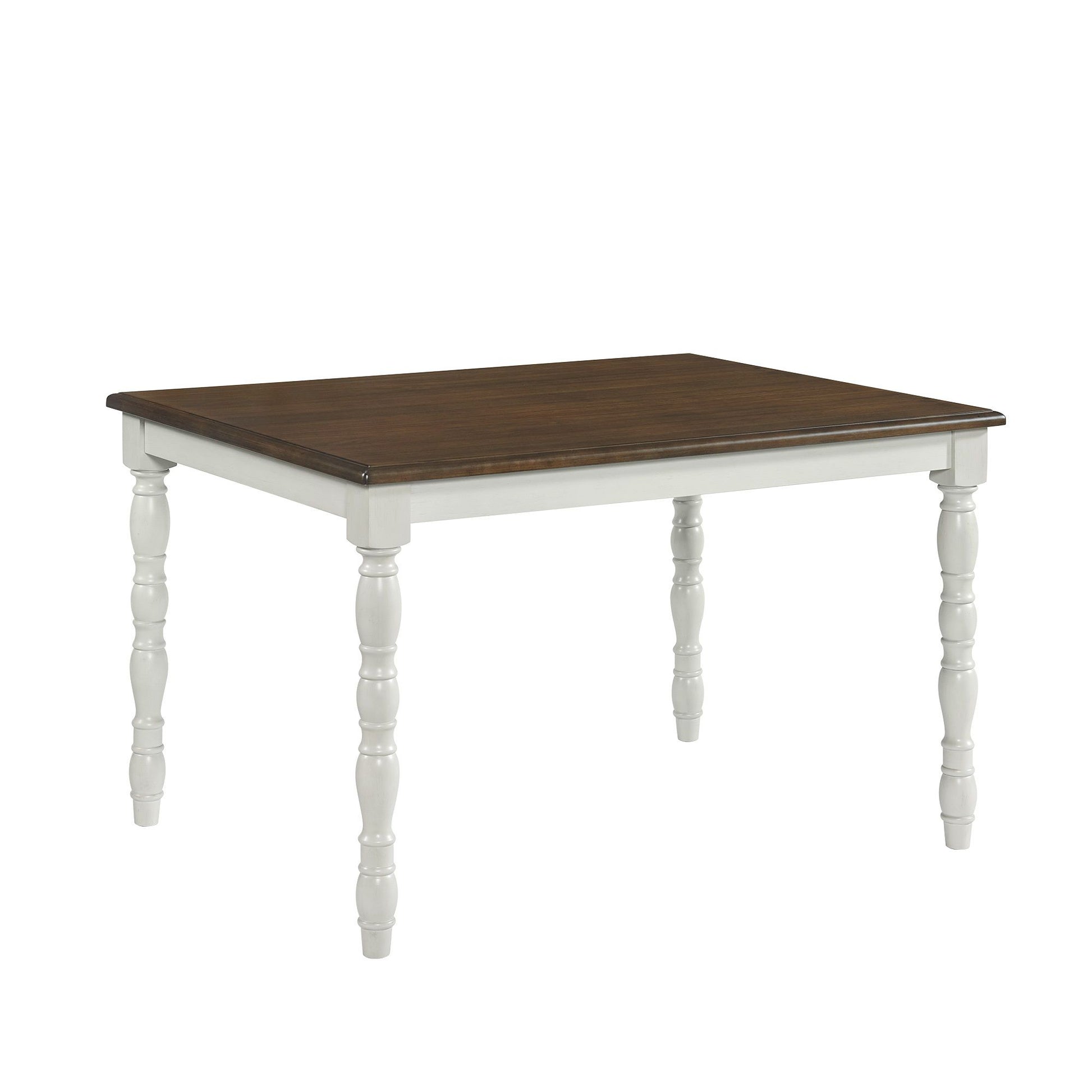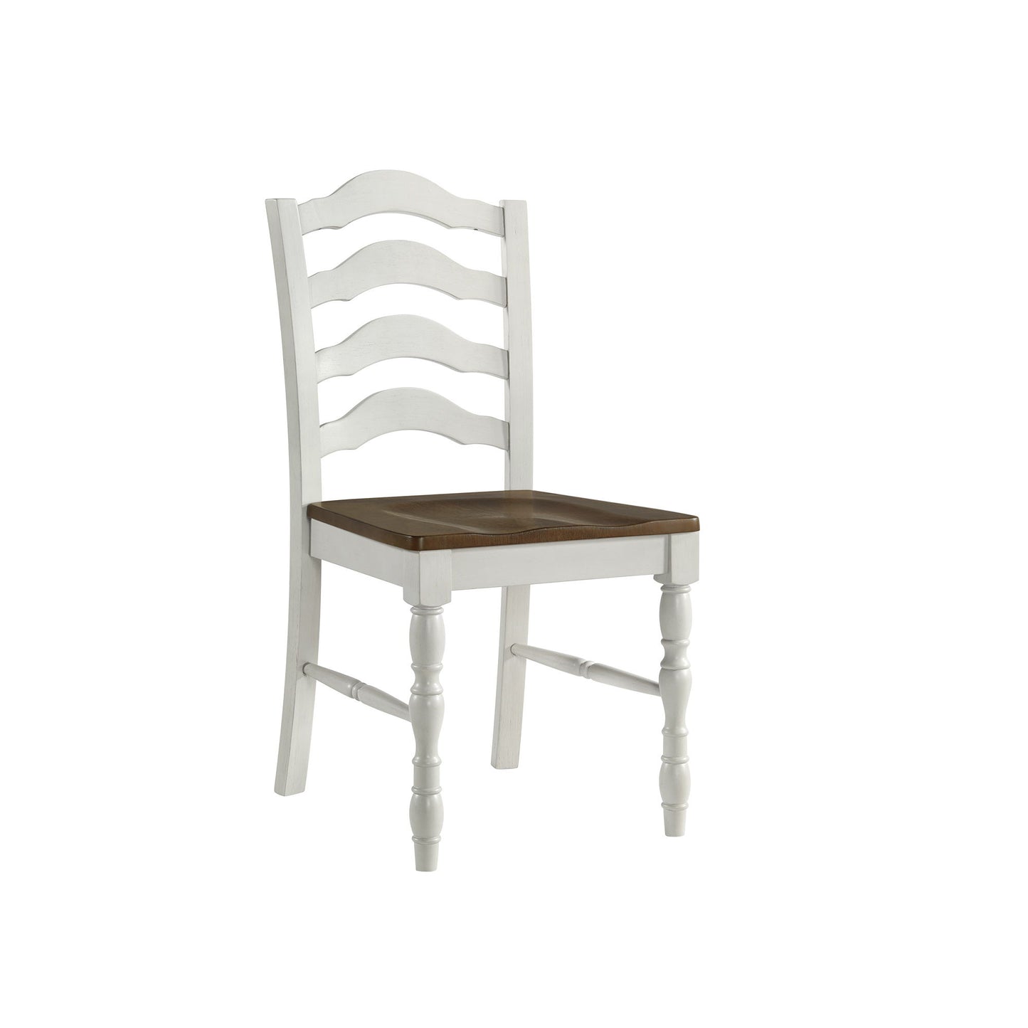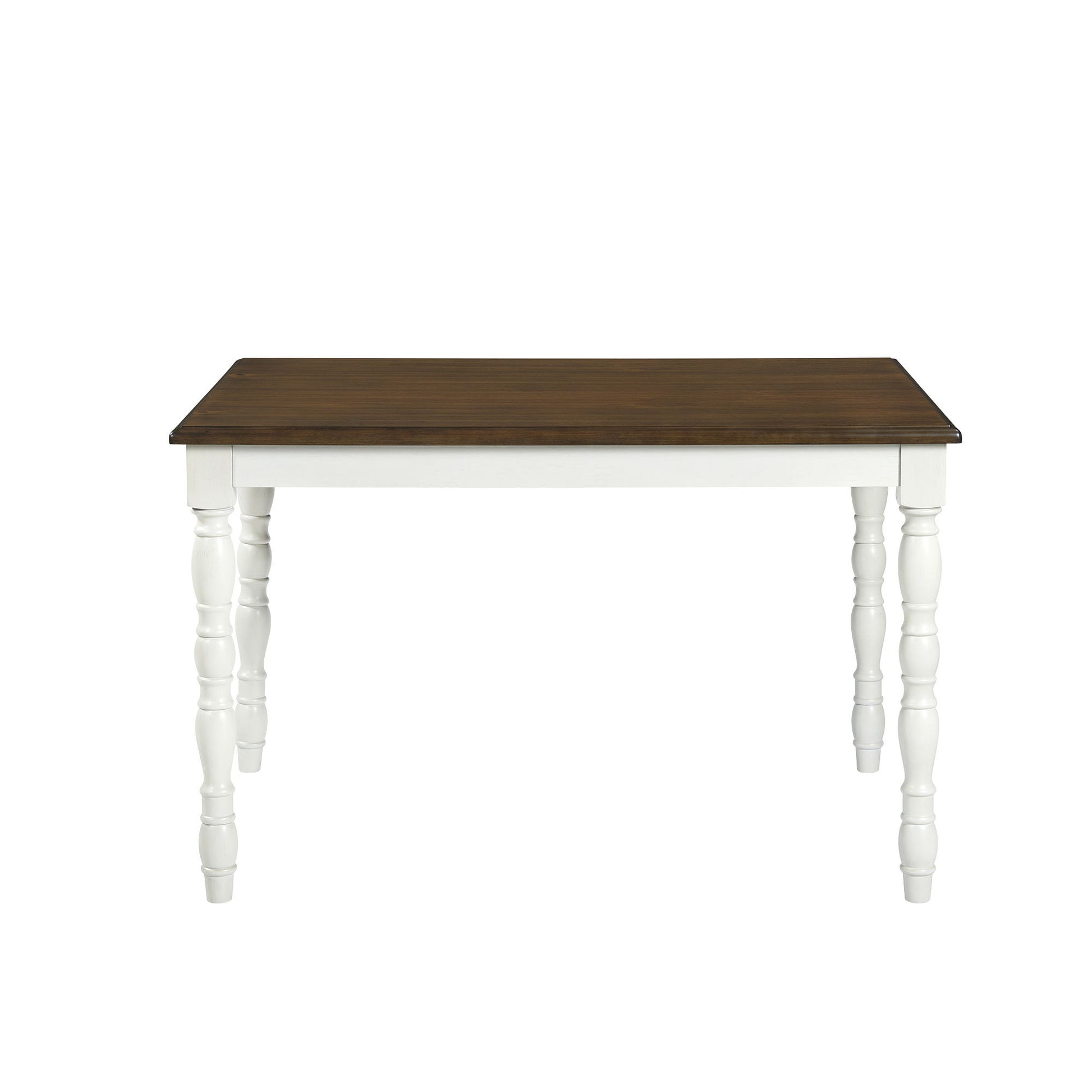 The Vesta 5PC Dining Set with Brown Top in White brings the charm of farmhouse style to your dining area. With its two-toned finish, featuring an espresso table top and seats against a white frame, this set offers a timeless design that will complement any decor. The classic arched ladder chair backs add elegance and comfort, while the country turned legs enhance the rustic appeal. Whether you're hosting a family dinner or entertaining guests, this dining set is perfect for creating a warm and inviting atmosphere.