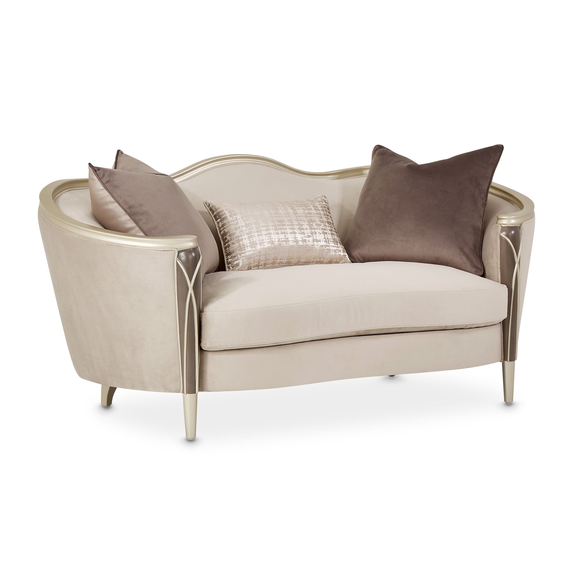 Find your perfect shape with the Villa Cherie Loveseat. Tapered legs and Chardonnay trims instantly brighten any living room while curving arms and backrests add a dynamic elegance you’ll only find in Hollywood!
