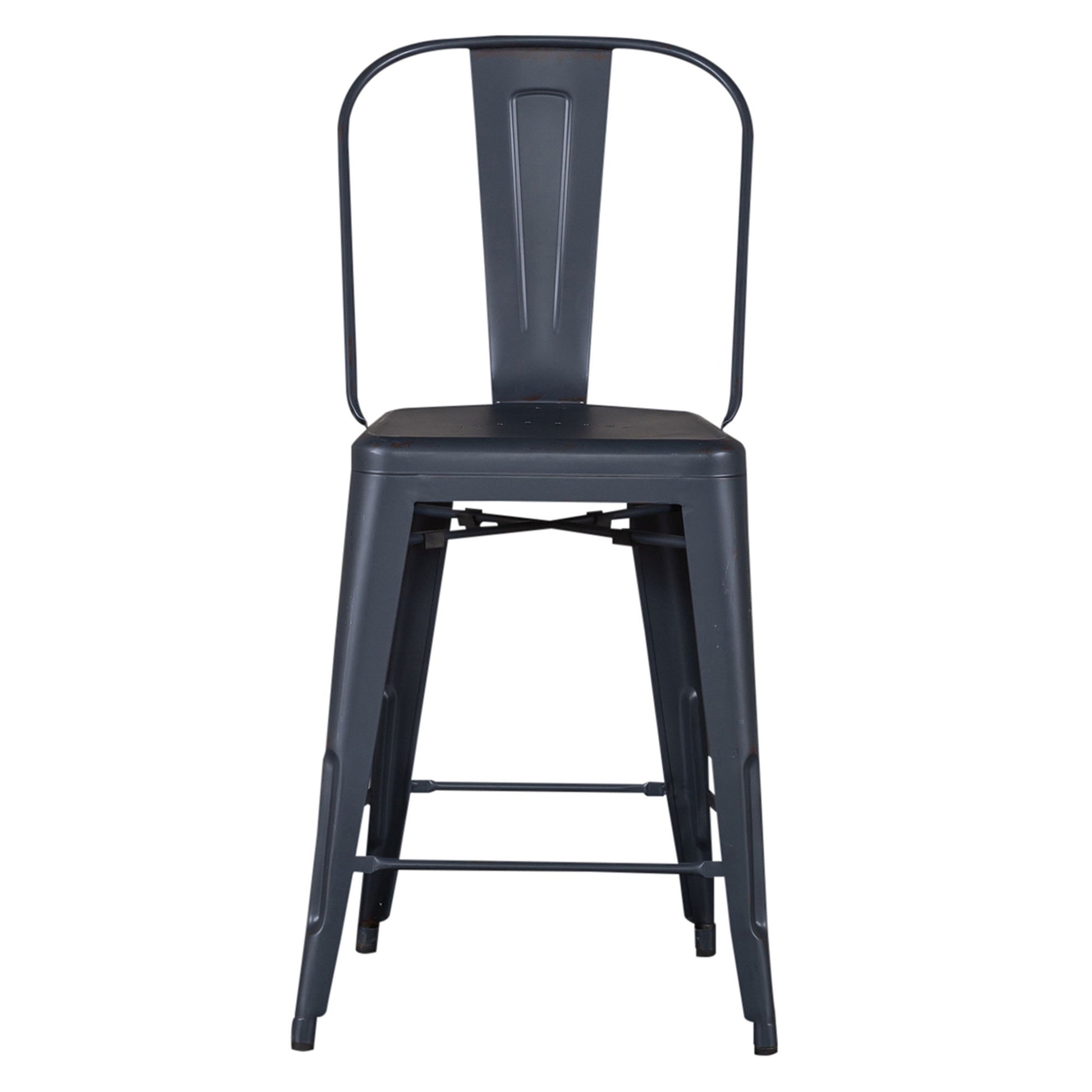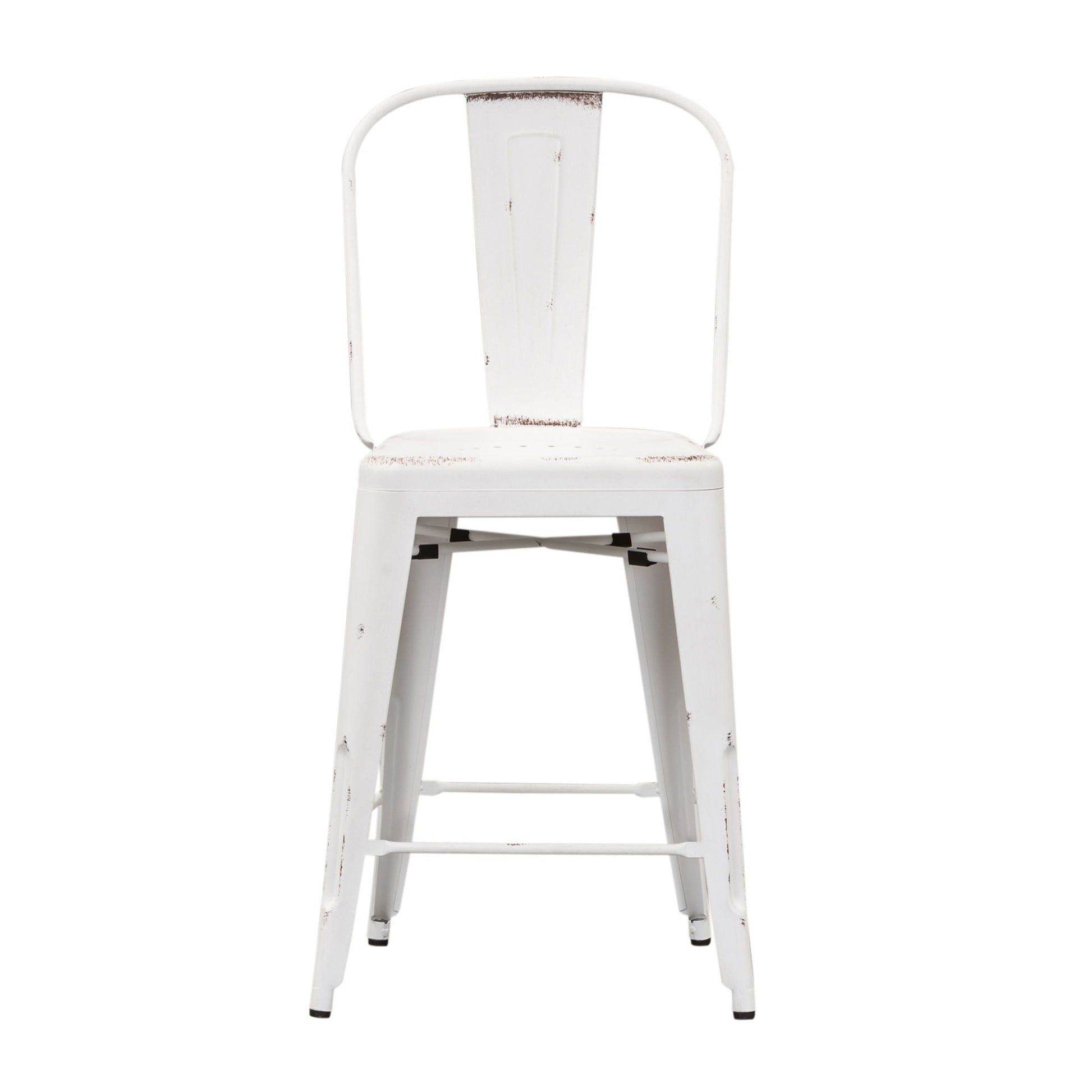 Indulge in classic vintage styling and industrial feel with the Vintage Series bow back counter chair. Crafted of metal, this piece features multiple finish options and heavy distressing. Distressed metal finishing accompanied by colors that can mix and match offer a unique designer look.