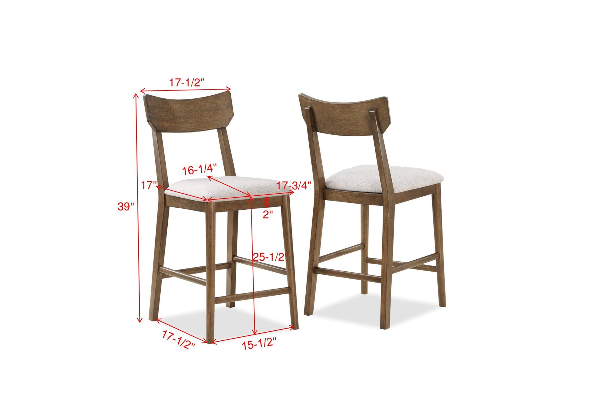 Bring mid-century charm to your dining space with this elegantly designed counter height dining group, perfect for casual meals and stylish gatherings. The sleek, compact table features a warm woodgrain finish and softly rounded edges, creating a timeless look that blends seamlessly with any décor. Supported by tapered legs, it offers both stability and a refined aesthetic. The coordinating chairs showcase a sculpted backrest and plush upholstered seats, providing comfort while maintaining a clean, minimalist design. Ideal for small spaces or modern interiors, this set combines sophistication with everyday functionality, making it a beautiful and practical addition to any home.