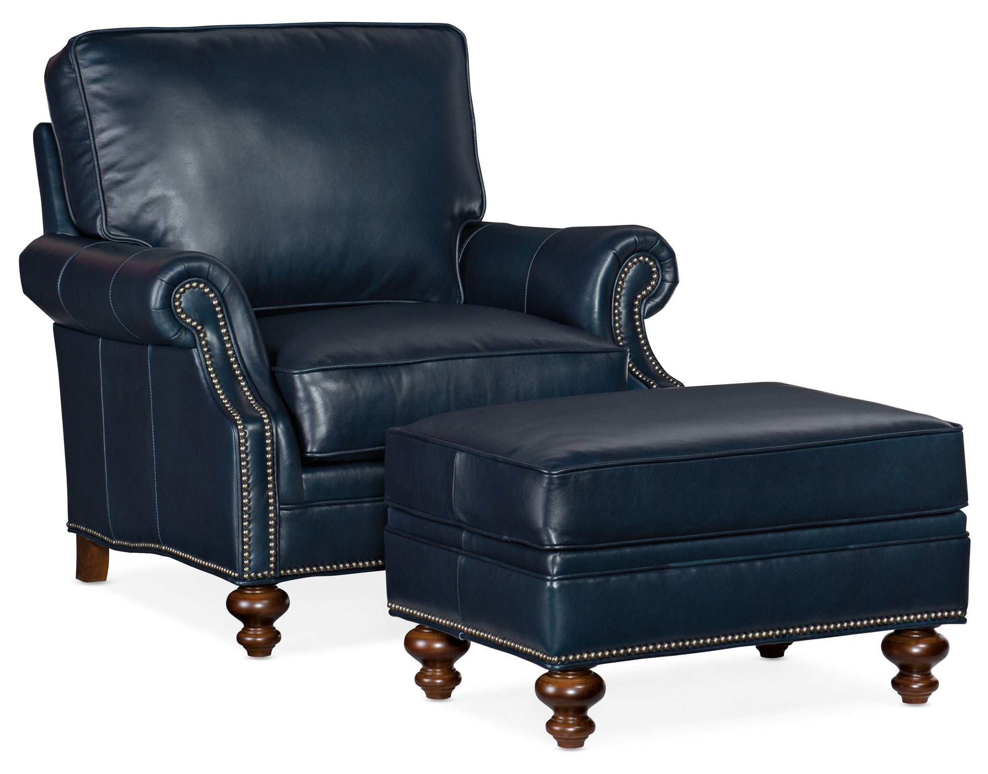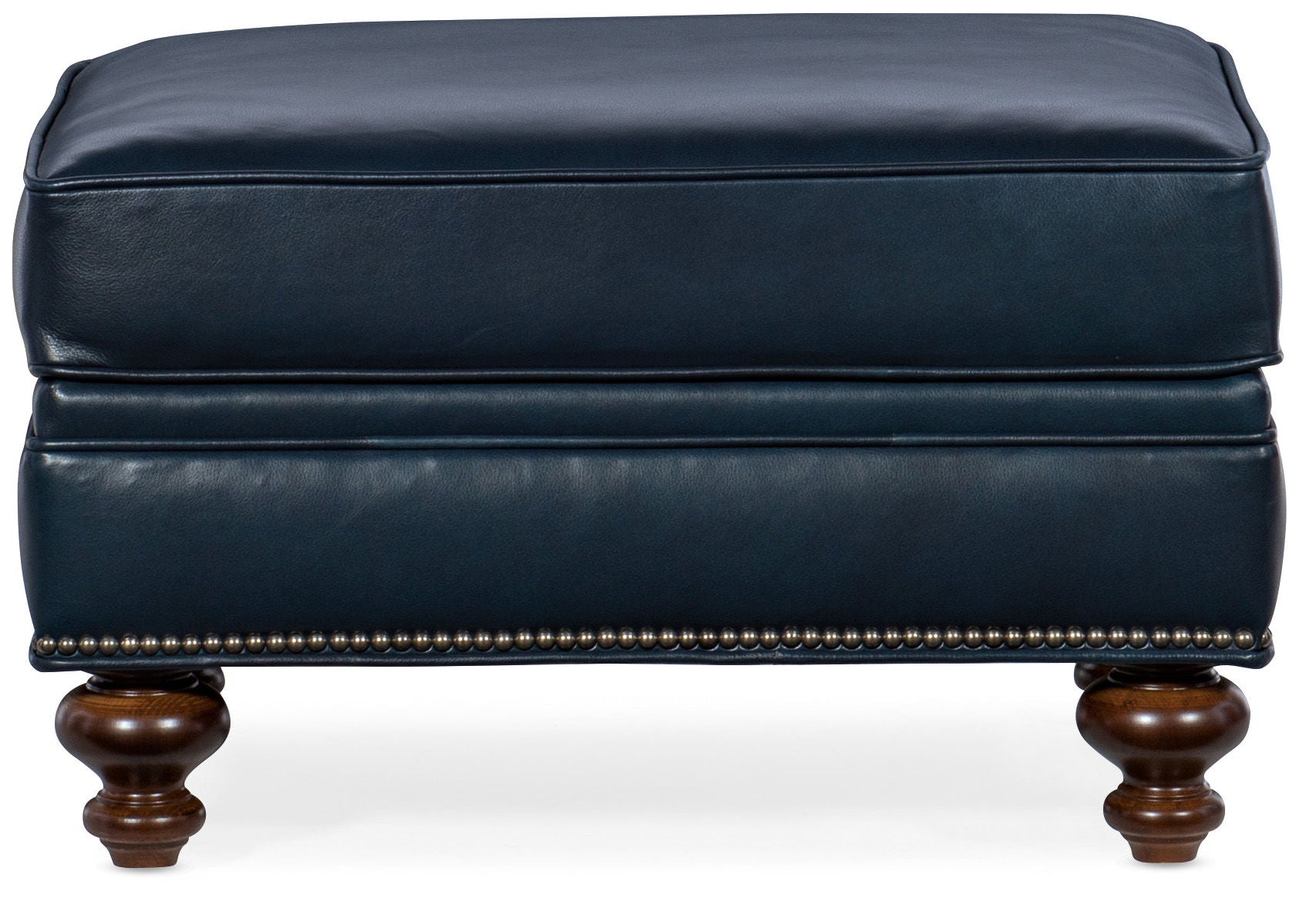 The West Haven Ottoman is offered in hundreds of leather options. The standard Nailhead Trim #9 in Natural Finish. Other decorative nailhead finishes available at no additional cost. It comes standard in a Mahogany finish. Other finishes available at no additional cost.