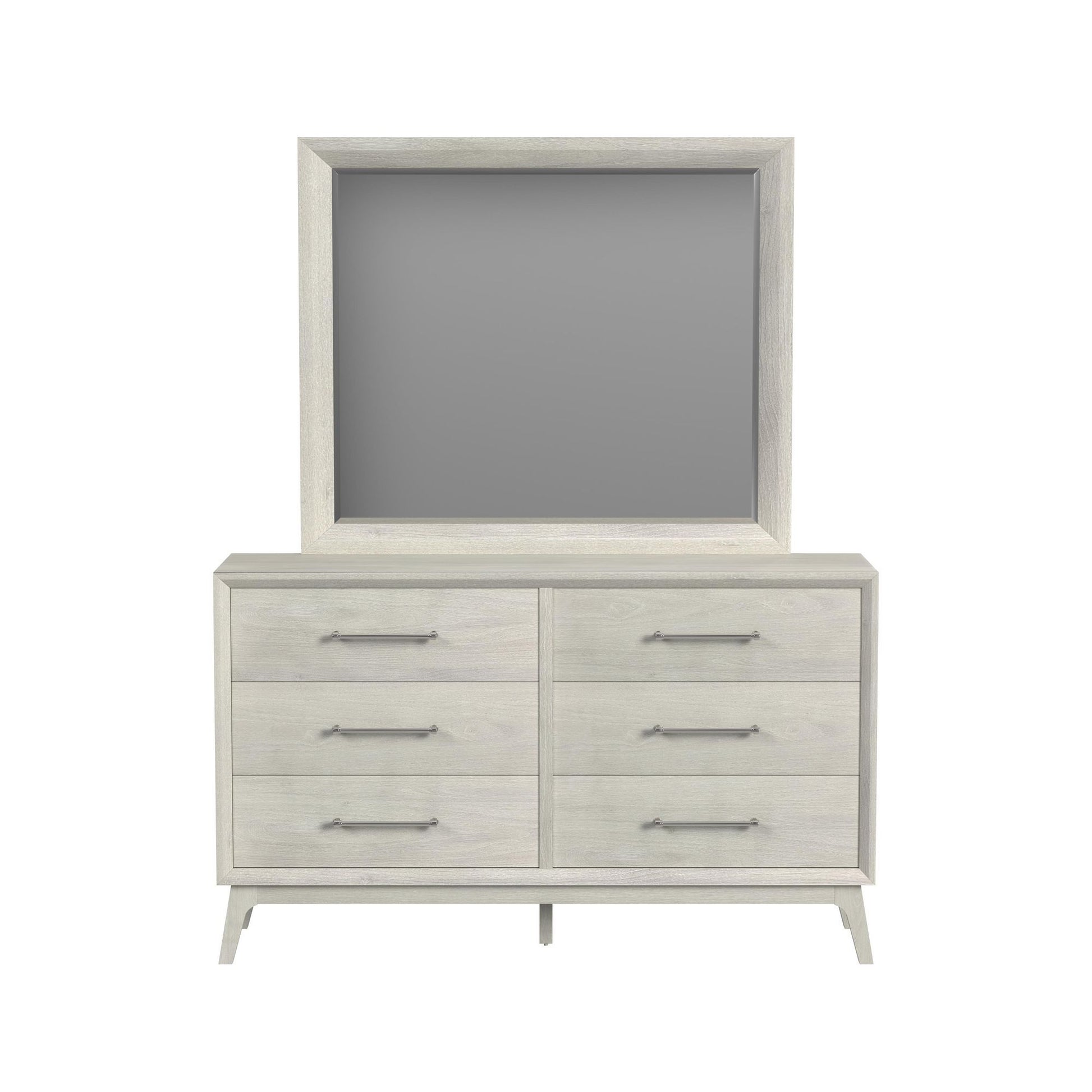 Give your bedroom a fresh, modern vibe with the contemporary Westland Dresser and Mirror Set. The almond-colored wood adds a cozy, natural touch to your space. It features sturdy butt joint construction with corner blocked reinforcements, while the top drawers lined with black felt gives this case piece a classy feel. Included is an anti-tipping kit for extra safety that is easy to install. Upgrade your bedroom with this chic and practical dresser and mirror designed to make your everyday life stylish and organized.