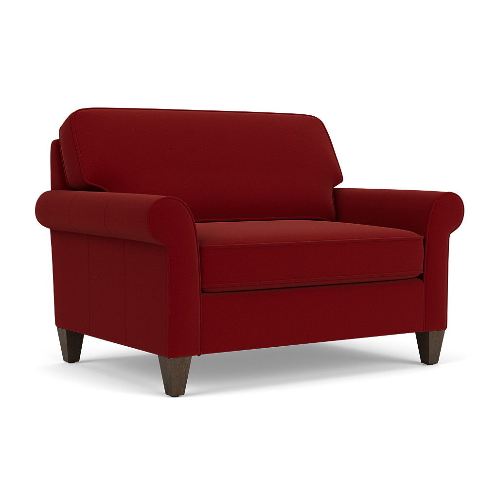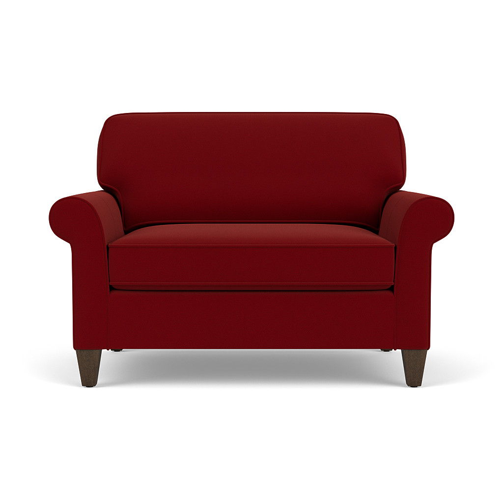 Deep seating with refined style. Lean back and look sophisticated in this Westside classic. Rolled arms and tapered wooden legs elevate an angled profile so you can sit back and relax elegantly. Soft boxed seat and back cushions paired with quality construction provide years of comfortable seating for you and your family.