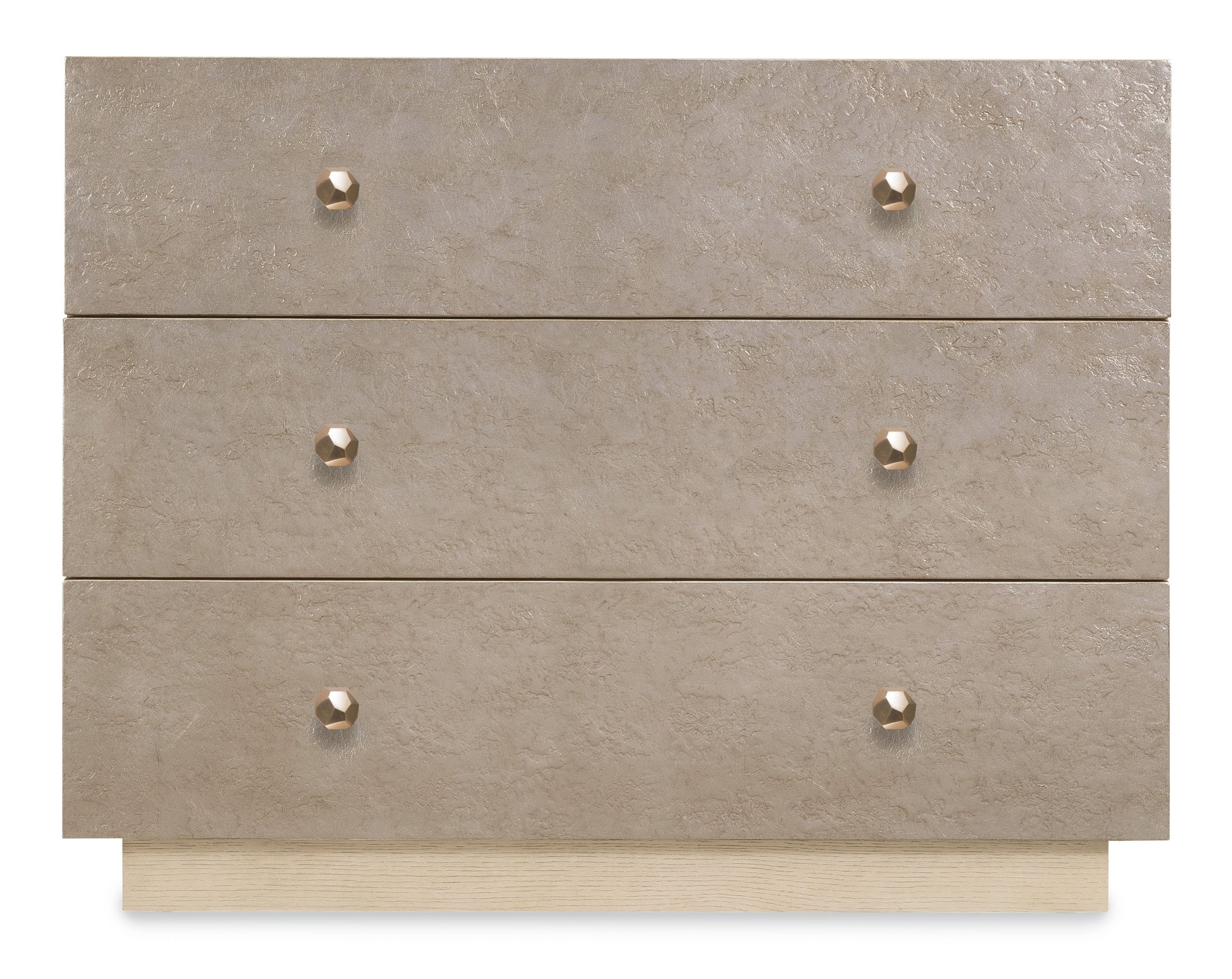 The Westwood Bachelors Chest is the epitome of modern luxury. With three spacious drawers, contrasting silver-leaf finished drawer fronts, and cedar-lined bottom drawers, this chest offers stylish storage for any bedroom. The Polished Limestone finish on quartered oak veneers is complemented by plated Radiance hardware, making this piece perfect for those who appreciate subtle sophistication. An integrated USB port adds a modern touch, ensuring both form and function in your bedroom.