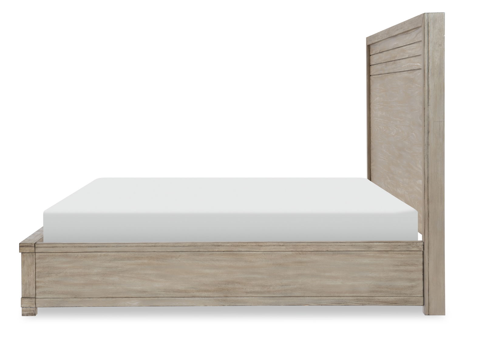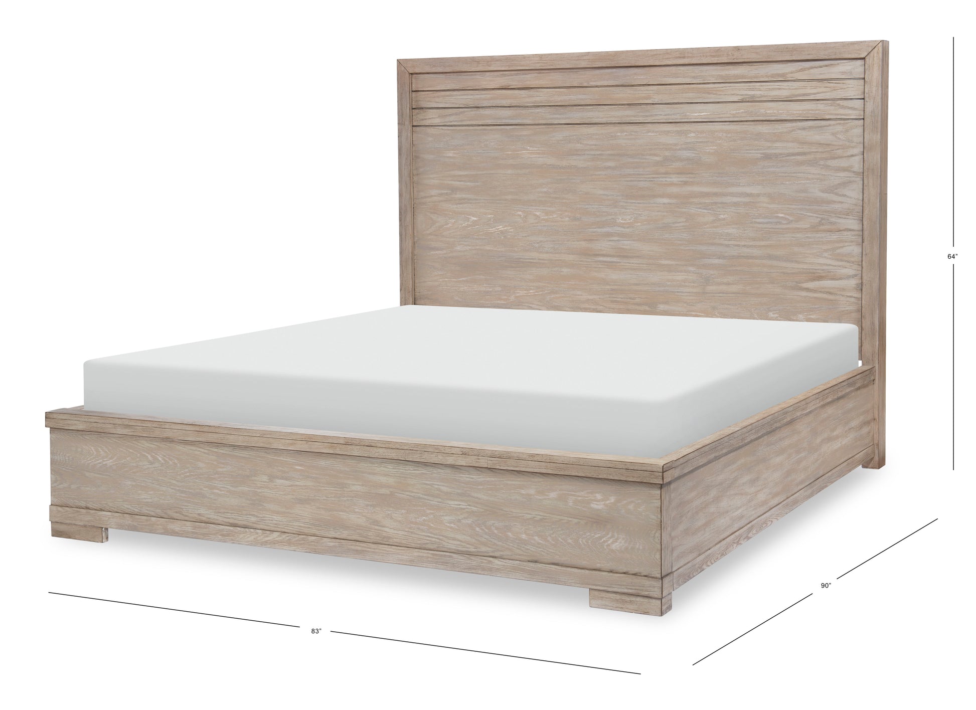 This complete panel bed embodies refined rustic and modern elements. Minimalist design details such as block feet, grooved panels, and clean lines lend the perfect backdrop for the distinctive wire brushed finish. The earthy weathered oak finish will blend with any bedroom color palette and décor.
