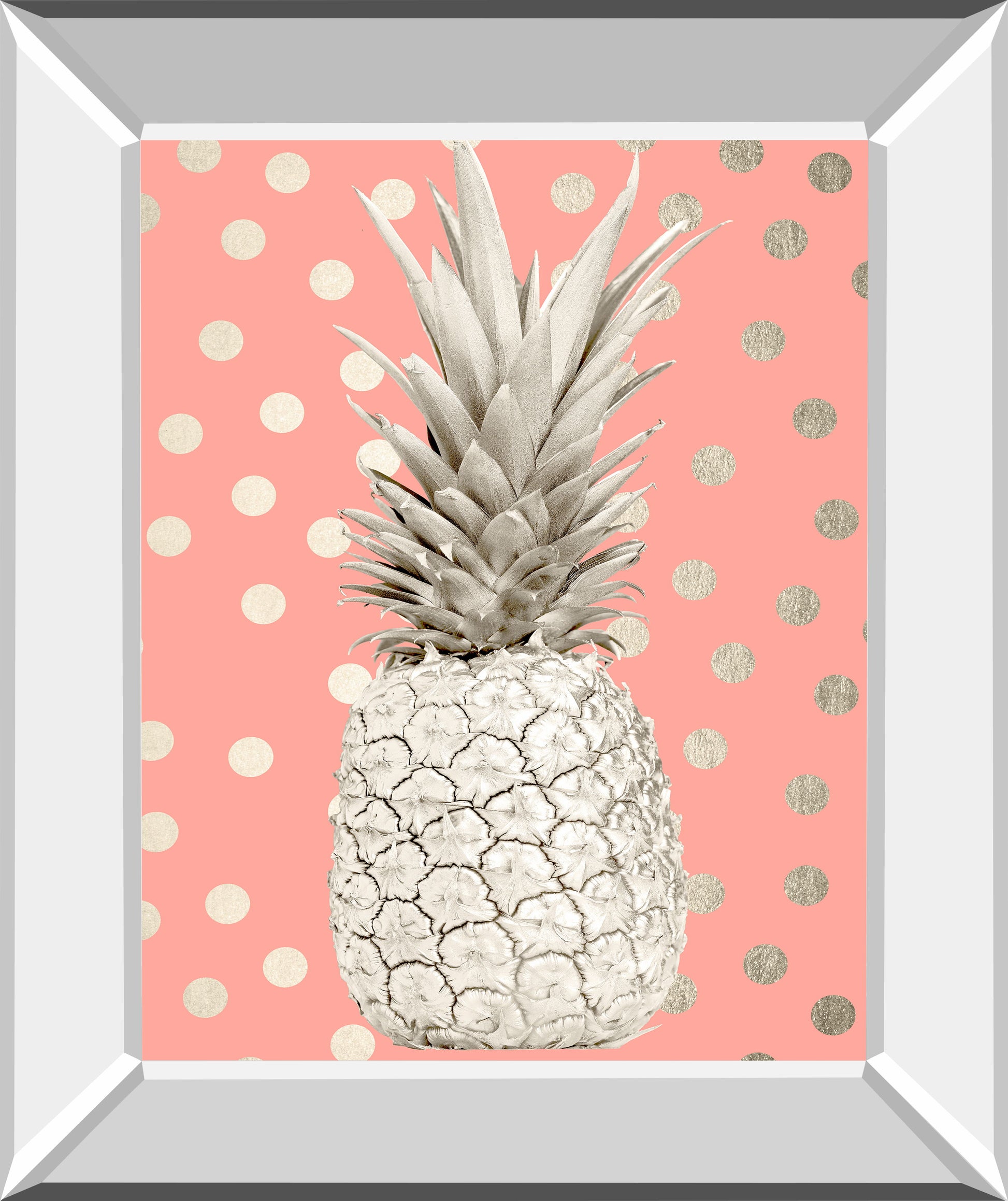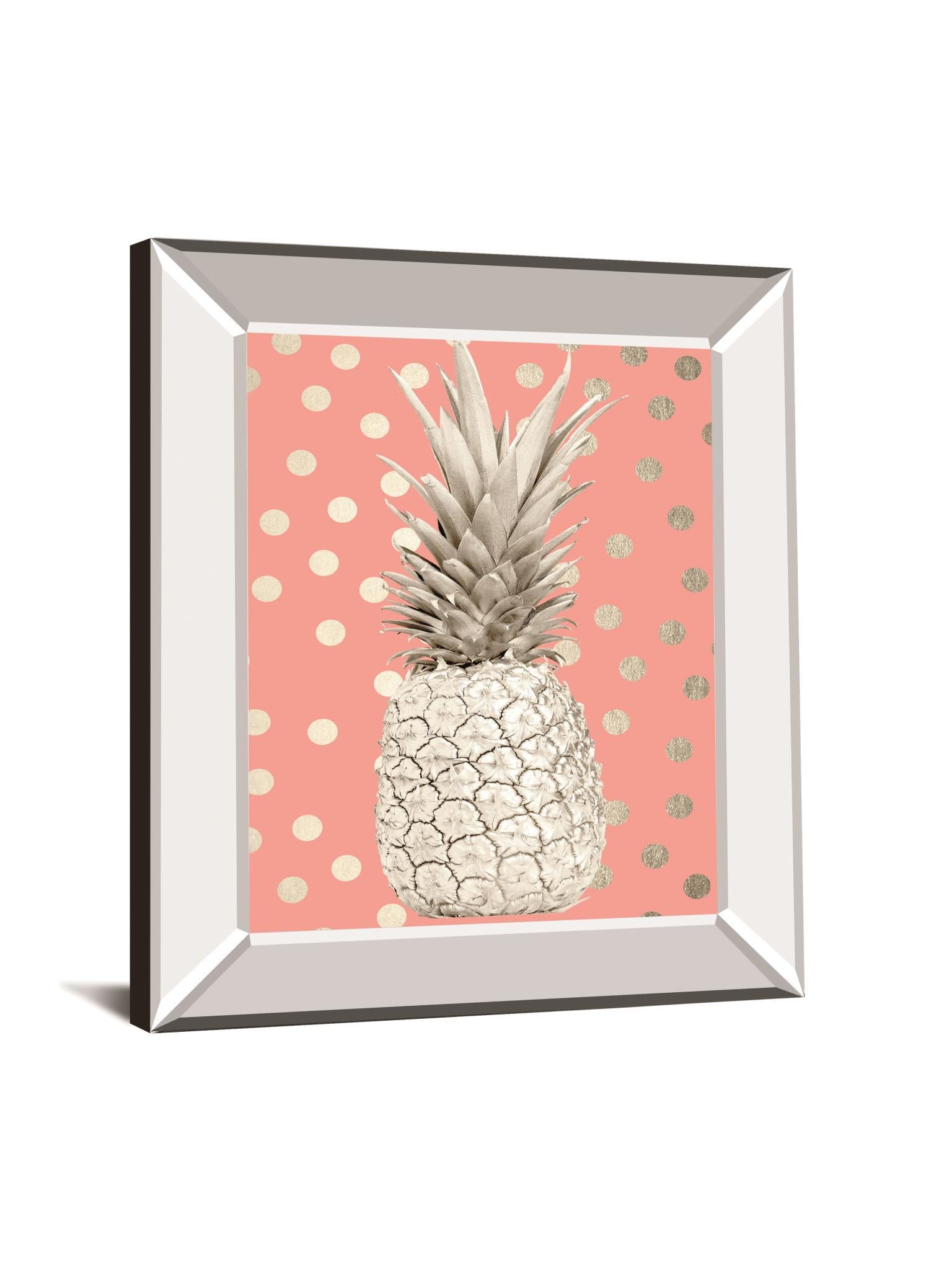 White Gold Pineapple On Polka Dots Pink By Nature Magick - Mirror Framed Print Wall Art - Pink