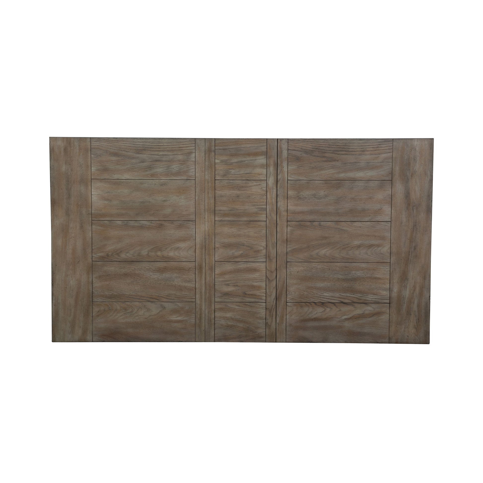 Gather around the Whitney rectangular leg table. Crafted of rubberwood solids and oak veneers, this piece features an English country charm, one 12" leaf to accommodate guests or a larger family, planked top, and is anchored by heavily turned legs. The antique linen and weathered gray finish gives this group an heirloom appeal.