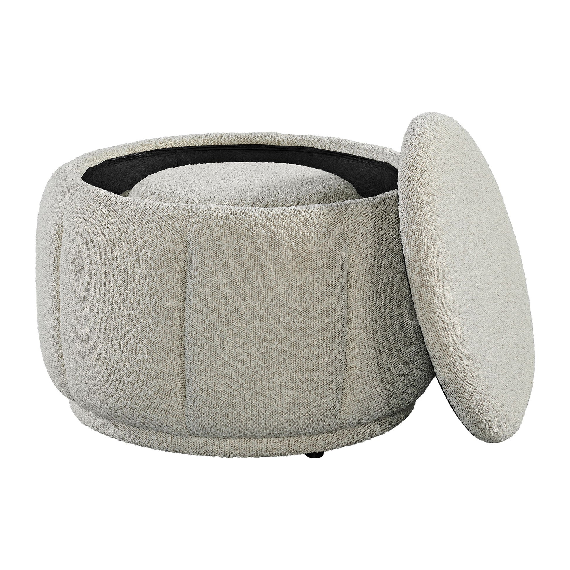 Introducing the Winchester Ottoman Set a cozy, playful addition to any nursery or playroom. This delightful set is covered in super-soft, beige boucle fabric with gentle tufting, making it comfy for little ones. Its round, low-to-the-ground shape is perfect for kiddos to hop on, sit on, or even rest their feet. Lift the lid of the smaller ottoman to discover a hidden surprise a cute elephant chair companion. The two ottomans have room to store toys, books, or blankets, making them as handy as they are fun. The Winchester Ottoman Set will add an effortless touch of charm and practical storage to any play space!