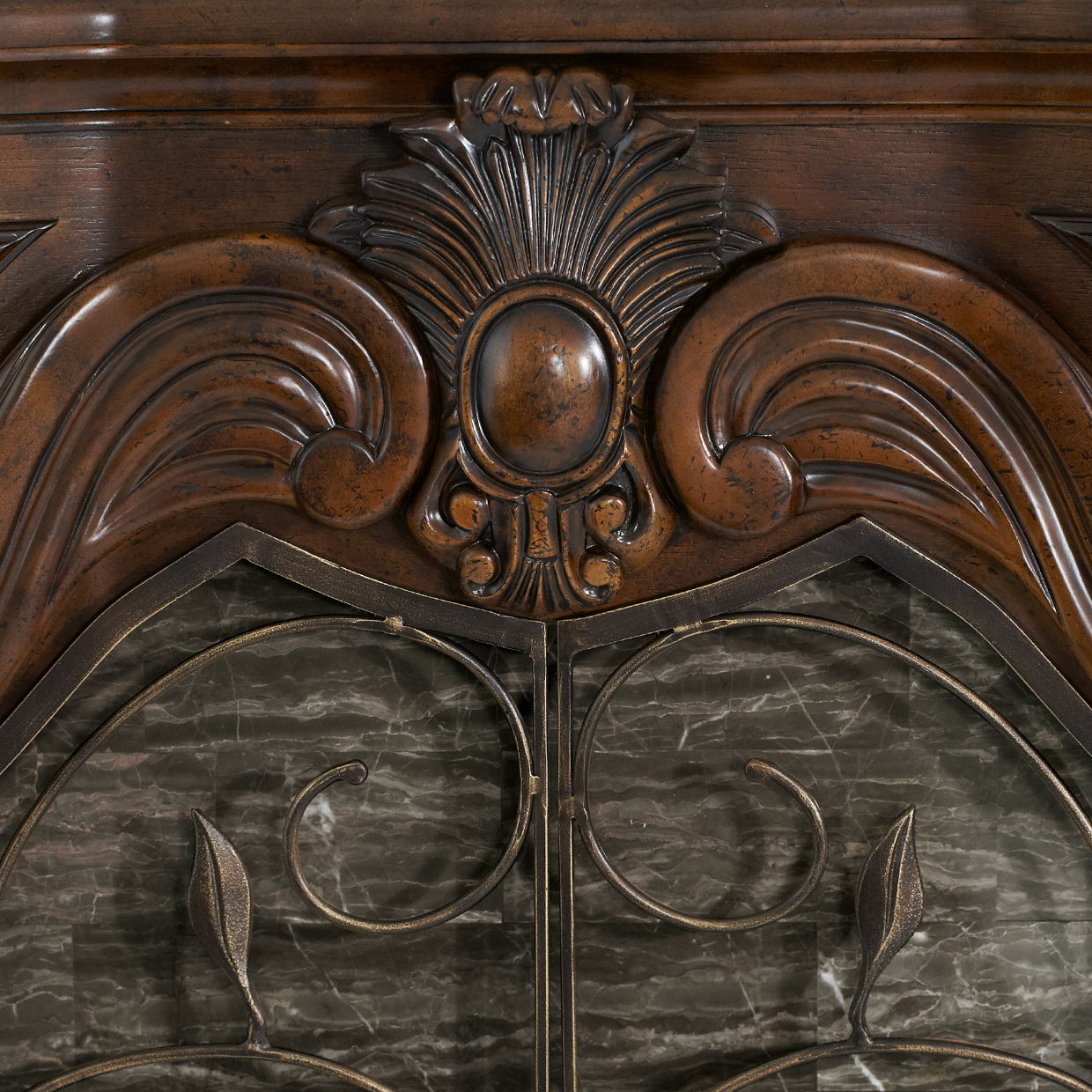 - Delicate metal scroll doors