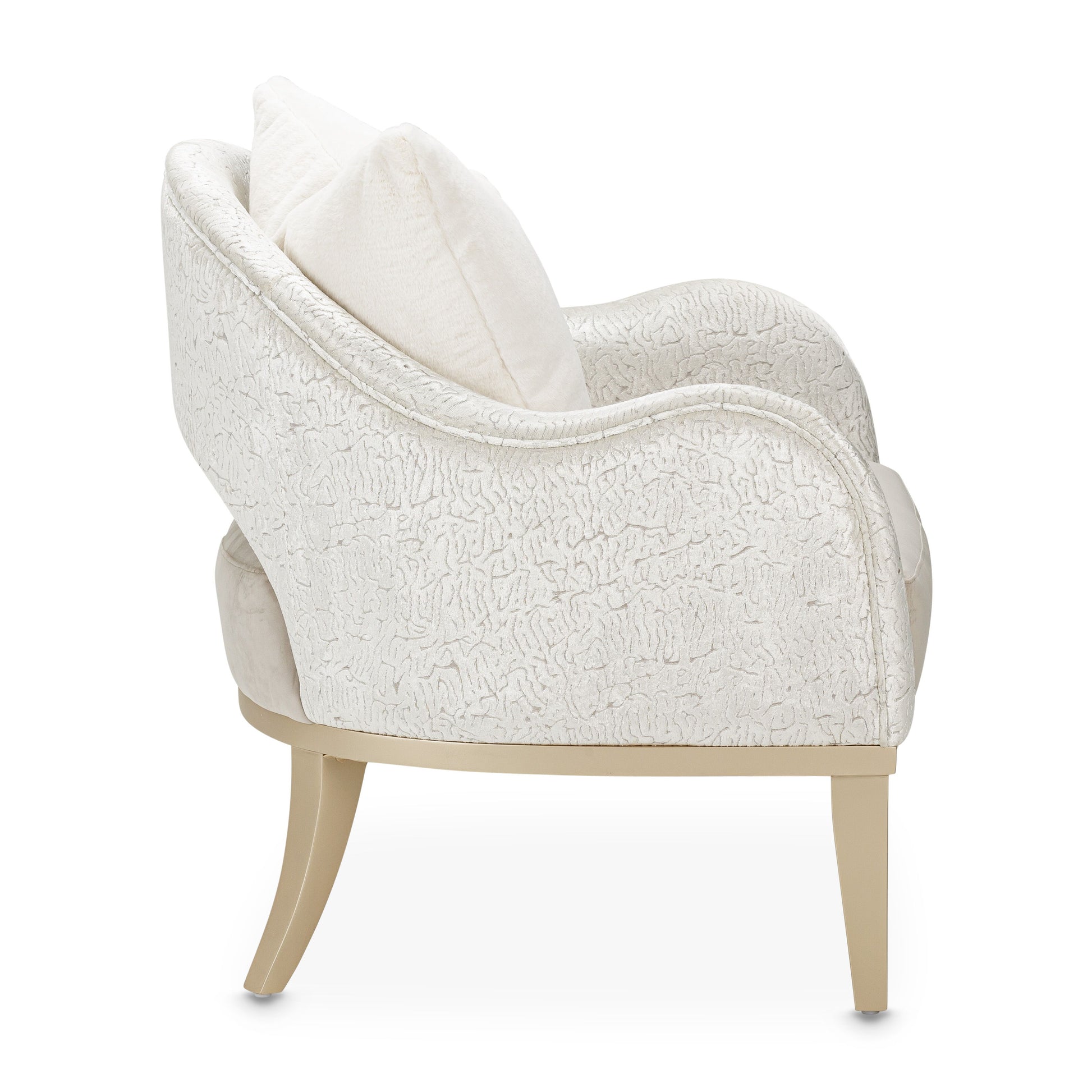 - Chair base and feet are finished in Chardonnay